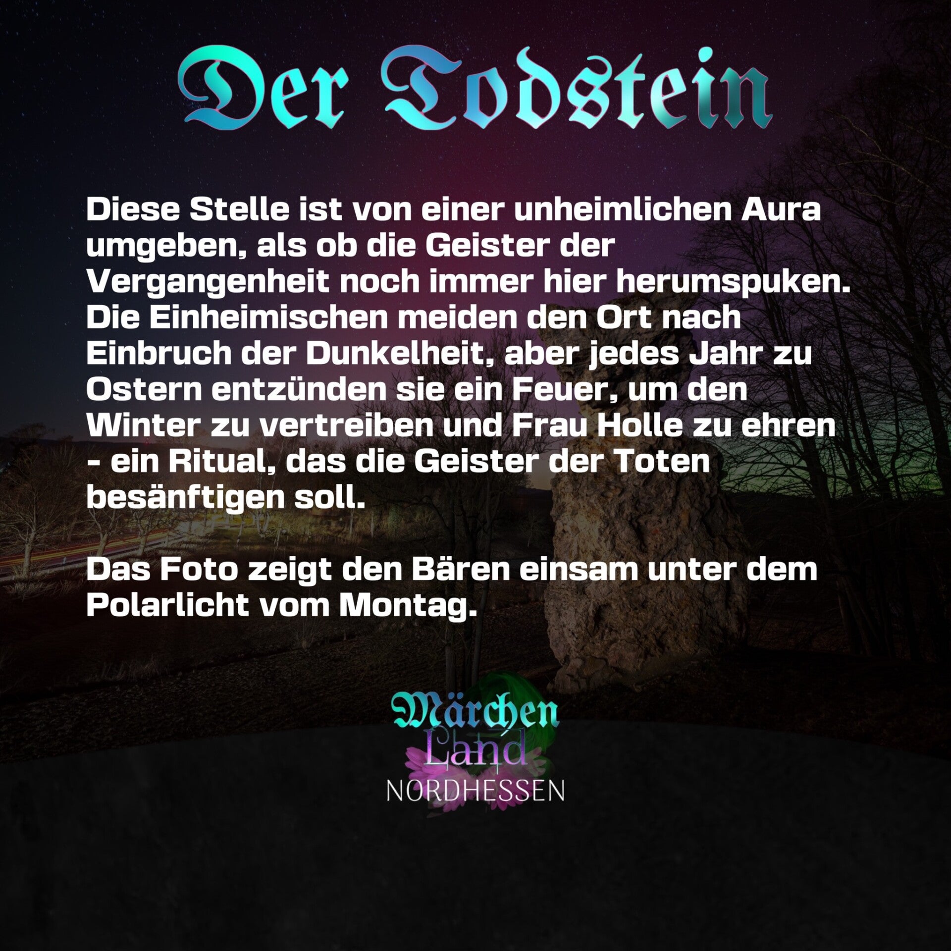 Hollen-Teich" gilt somit nicht nur als Zugang zum unterirdischen Reich der Frau Holle sondern zugleich als Ort der Wiedergeburt verstorbener Seelen. Eine Ausrichtung nach Westen symbolisiert die Seite des Todes- dementsprechend fährt Frau Holle im Spätherbst mit den Seelen der Verstorbenen (Pflanzen, Tiere und Menschen) in die sogenannte "Weiße Wand" auf der Westseite des Berges ein. Eine weitere mit Frau Holle in Verbindung stehende Sage ist die des Abteröder Bärs, auch Todstein genannt...