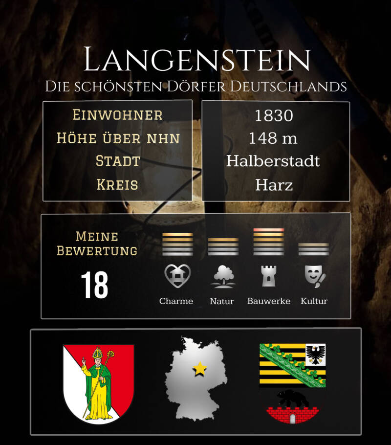1177 bauten die Halberstädter Bischöfe eine Burg auf dem „Langen Stein". In diese Burganlage wurden schon vorhandene Höhlen integriert, die aus der germanischen Siedlungszeit stammten. Überall findet man Höhlen und es gibt viele verwinkelte, verzweigte Wege, fast wie in einem Labyrinth. Man hat einen tollen Blick von oben auf das Dorf.