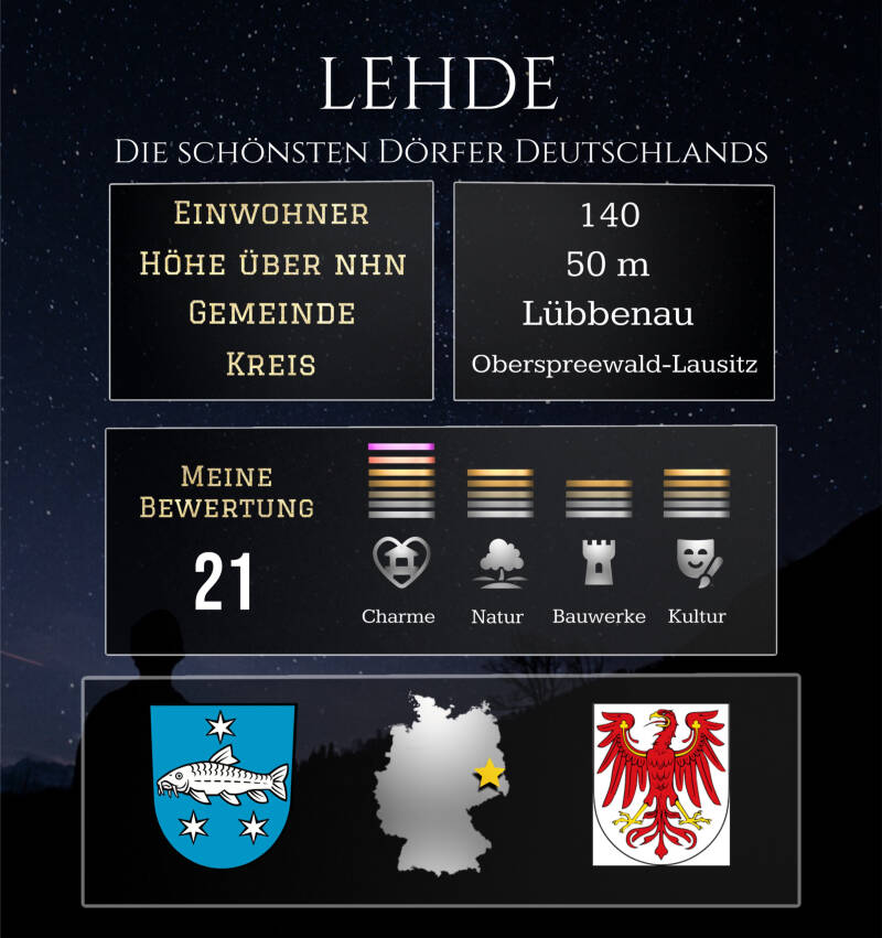 Mit nur 140 Einwohnern und seiner direkten Lage am Wasser fasziniert Lehde seine Besucher mit einer in Deutschland fast einzigartigen Atmosphäre. Schon Theodor Fontane, der große Dichter und Autor, schwärmte: "Es ist die Lagunenstadt im Taschenformat, ein Venedig, wie es vor 1.500 Jahren gewesen sein mag, als die ersten Fischerfamilien auf seinen Sumpfeilanden Schutz suchten."