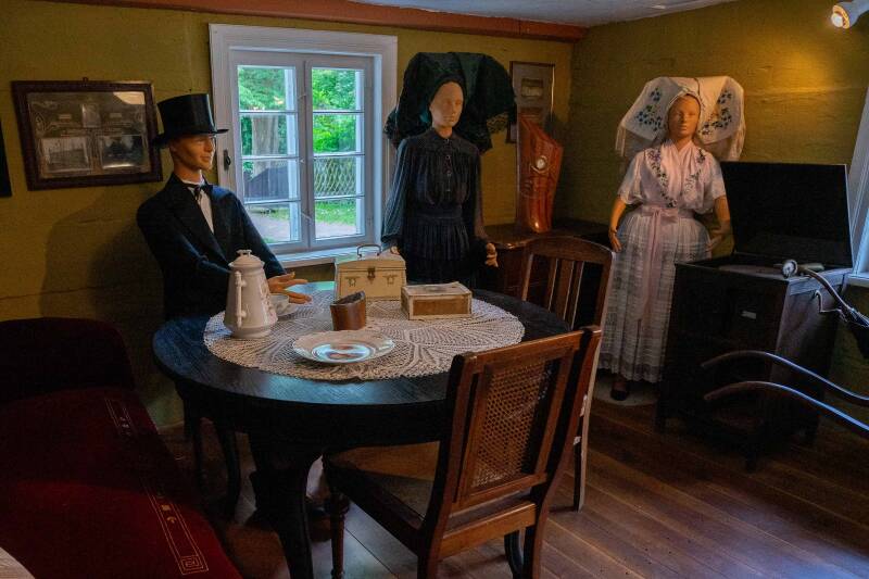 Man kann die original eingerichteten Stuben, wie man im 19. und 20. Jh. auf dem Lande lebte, begutachten