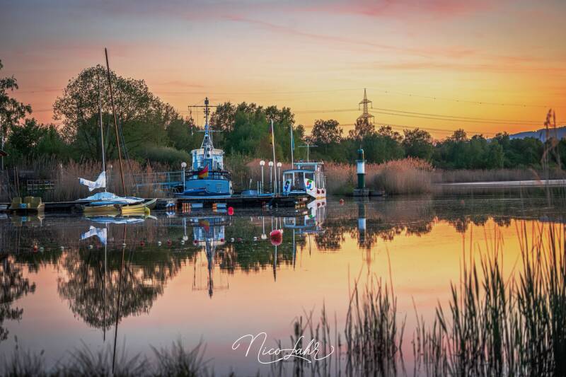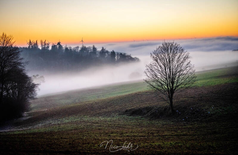 Zunächst unten nur Nebel auf den Wiesen, fing es an am Himmel rot zu leuchten. Gerade so vom Nebel, dass es richtig ästhetisch für das Bild ist, aber dennoch der Himmel frei zu sehen war. Vielerorts saß komplett im Nebel, da will ich doch nicht meckern. An der Schwalm ist erstmal jede Art von Getier weggeflogen als ich kam, aber zwei Schwäne chillten weiter im Wasser und ließen sich mehrere Momente fotografieren, teilweise sogar mit Langzeitbelichtung ohne Verwackelung.