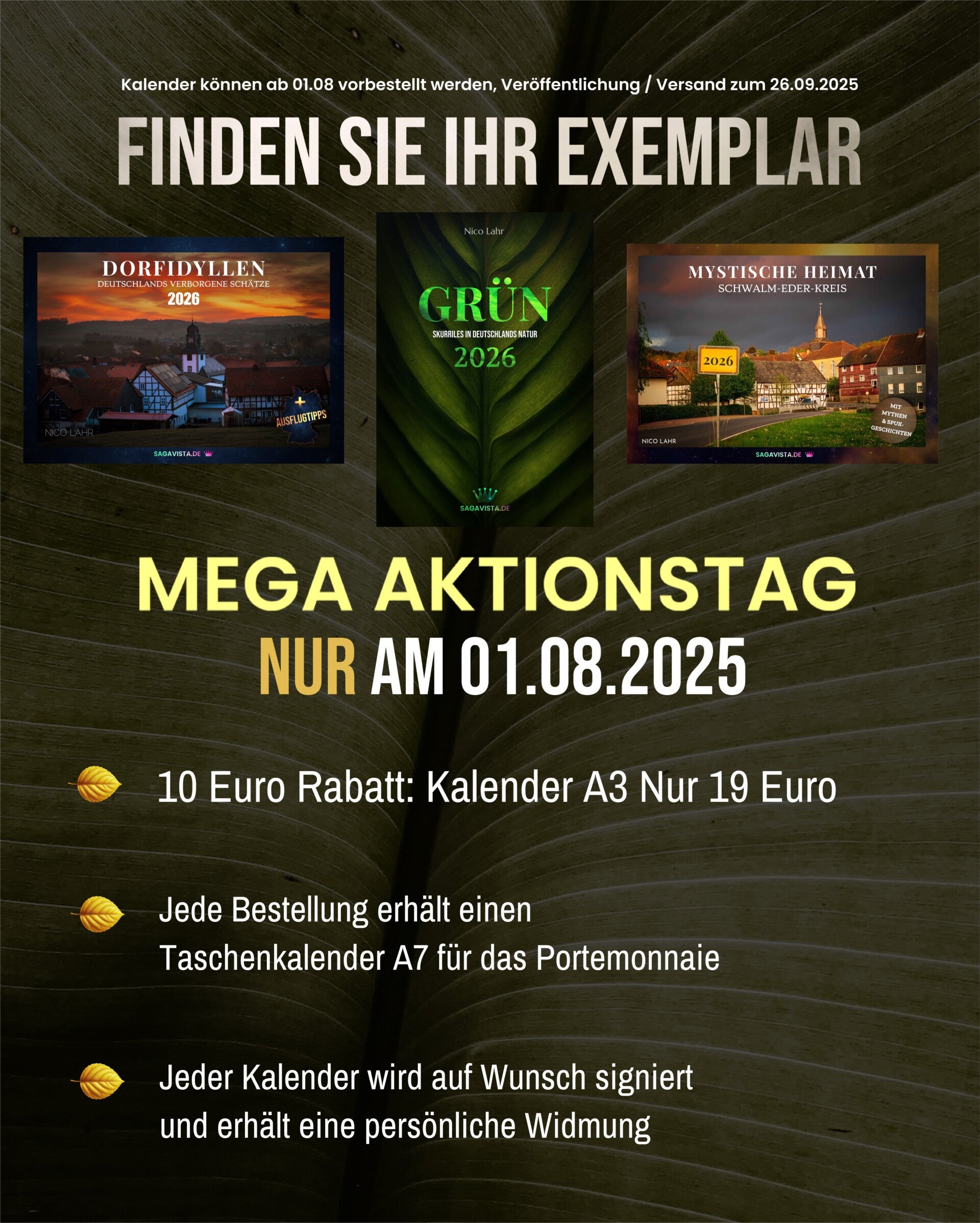 Entdecken Sie die SagaVista Kalender 2026, die mehr sind als nur ein Zeitmesser. Sie sind eine Reise durch atemberaubende Fotografien, die sorgfältig ausgewählt wurden, um jeden Tag zu etwas Besonderem zu machen. Erfahren Sie, was diese Kalender so einzigartig macht und welcher der drei für Sie die perfekte Wahl ist.