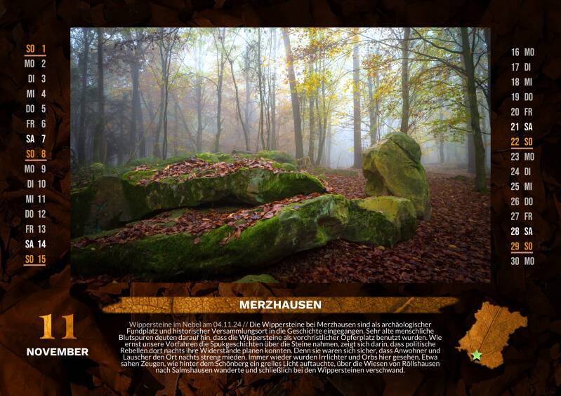 Der Schwalm-Eder-Kreis ist auch ein Ort voller Mythen, Sagen und schauriger Legenden. Und mit meinem Kalender "Mystische Heimat" können Sie die Region auf eine ganz besondere Weise entdecken.