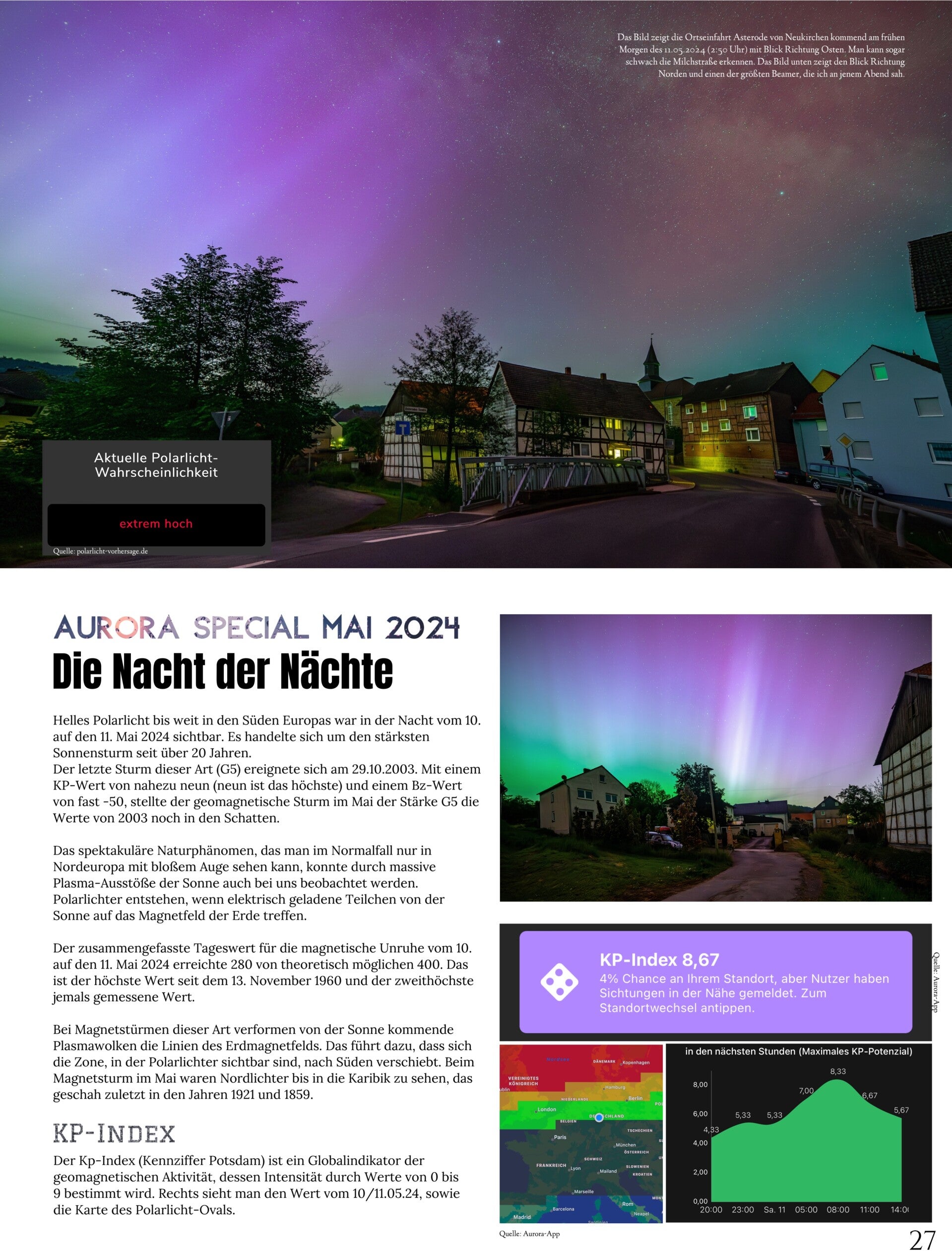 Es gibt über 150 Farbfotos, teilweise mit einzigartigen Wetterphänomenen. Und es gibt natürlich ordentlich viele Polarlicht Bilder, auch über Doppelseiten.