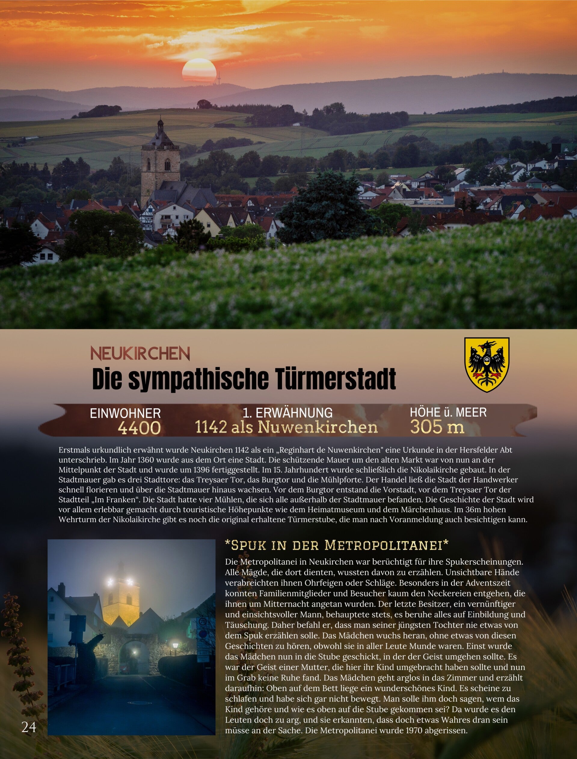 A4, 100 Seiten, über 60 Orte, mit ortsgebundenen Sagen; Mythenkompass, skurrilem Geschichtswissen und Ausflugtipps