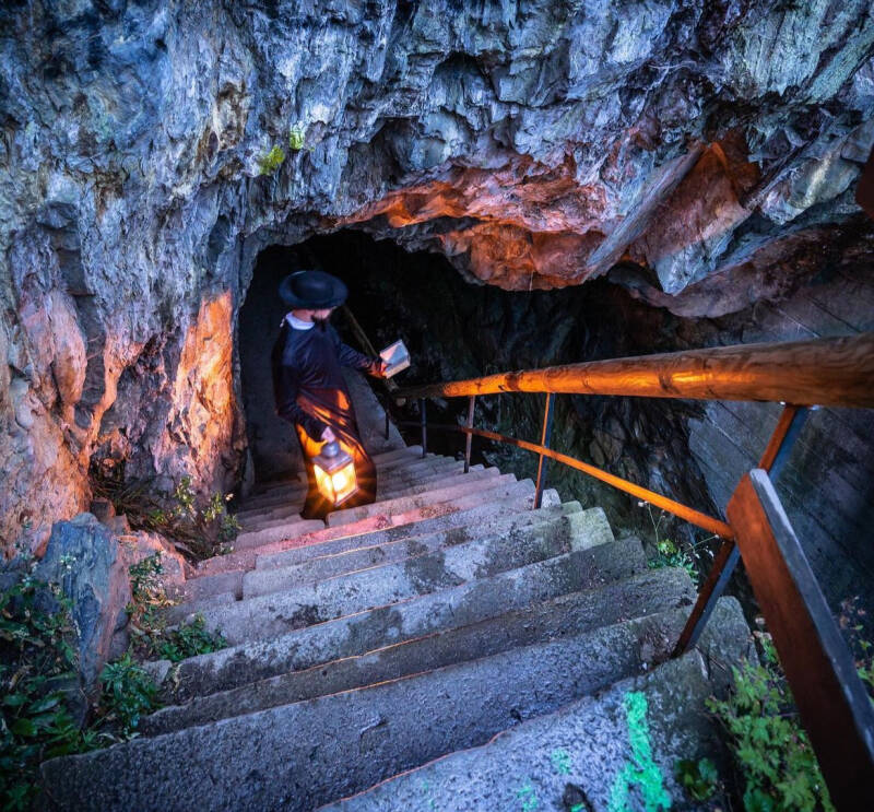 Der stillgelegte Wasserwegtunnel steht nun Besuchern offen. Ein filigranes Geländer leitet Wanderer durch die rabenschwarze Tiefe der Grotte. Die Umrisse der eigenen Hände sind dort nur noch zu erahnen. In der Mitte des Tunnels zieht eine spürbare Kälte an den Beinen hoch. Auch weil beim Bau dieser Abkürzung es zu zahlreichen schweren Unfällen kam, wird dieser Tunnel als Geistertunnel bezeichnet.